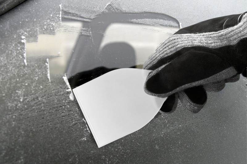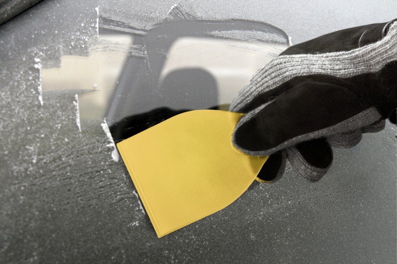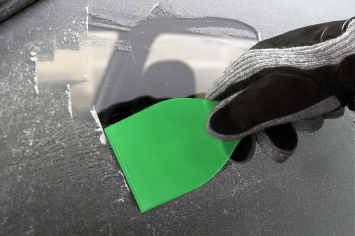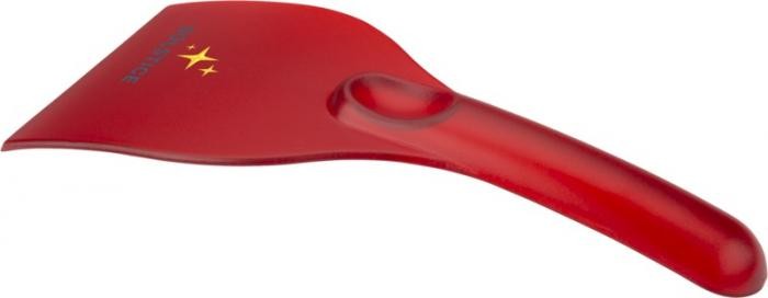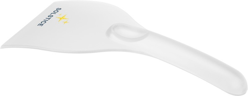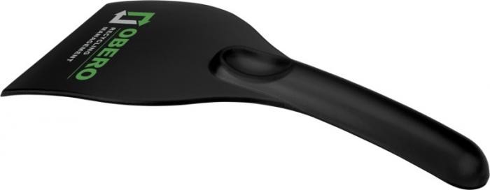 Grattoir à main pour pare-brise avec une grande zone de marquage. Fabriqué en plastic recyclé HIPS. Le grattoir à glace a une finition mouchetée due à la nature du matériau recyclé.
