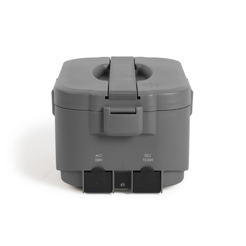 Lunch box chauffante avec 1 compartiment acier inoxydable 1800 ml et 1 compartiment plastique 410 ml. Puissance 45 W, maintient au chaud et réchauffe les repas en 45 minutes, récipients et couverts compatibles lave-vaisselle. Fermeture à 4 clips, sortie de vapeur pour dissipation de la chaleur et 2 cordons d’alimentation détachables : prise secteur et adaptateur allume cigare. Poignée de transport, une cuillère et 1 fourchette incluses.
