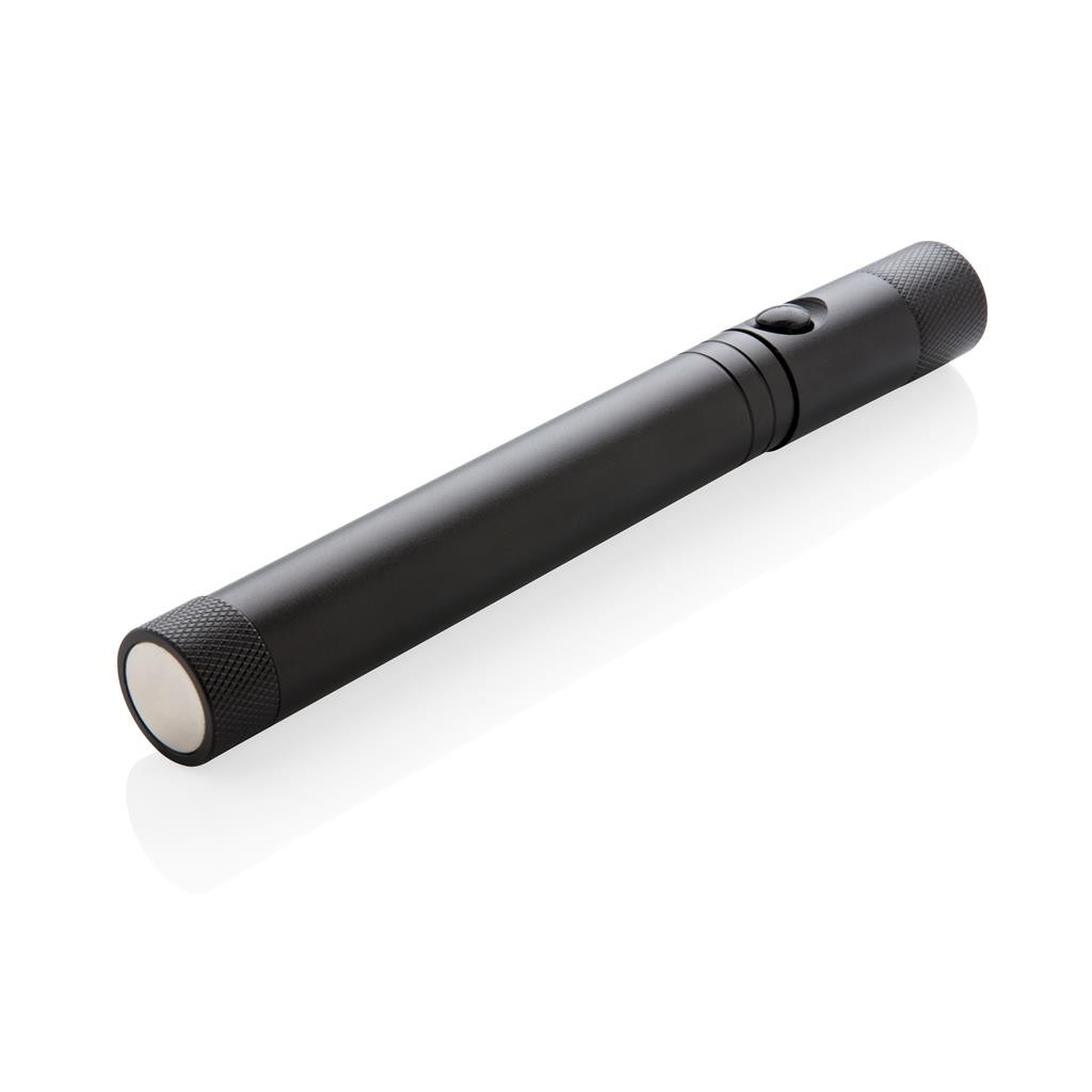 Lampe de travail magnétique avec trois LED qui peut être fixée sur n’importe quelle surface métallique pour un éclairage optimal. Cette lampe torche en aluminium vous permet de la faire passer de sa taille normale de 17 cm à 58 cm, pour atteindre des endroits difficiles. Lorsque la lampe est rallongée, la tête pivote et peut être réglée dans n’importe quelle direction. Piles incluses. Fabriqué en Chine.