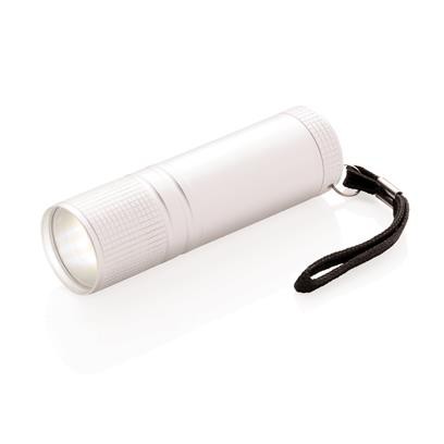 Lampe torche COB en aluminium, super puissante en taille de poche. Cette lampe COB est beaucoup plus puissante que les lampes LED habituelles et consomme moins d’énergie, permettant une autonomie 30% plus importante sur la même batterie. Avec dragonne et 3 piles AAA incluses. Fabriqué en Chine.