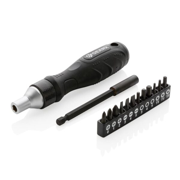 Tournevis de luxe avec tige et embouts en acier allié S2 de haute qualité. L’ensemble comprend plusieurs embouts : PH0/PH1/PH2,SL3/SL4/SL5/HEX3/HEX4/HEX5/TX8/TX10/TX20. Facile à fixer grâce à un aimant très puissant. Ce tournevis multifonctionnel est prêt à être utilisé quand vous en avez besoin. Niveau de dureté des embouts 60-62 HR. Emballé dans une boîte cadeau de luxe.