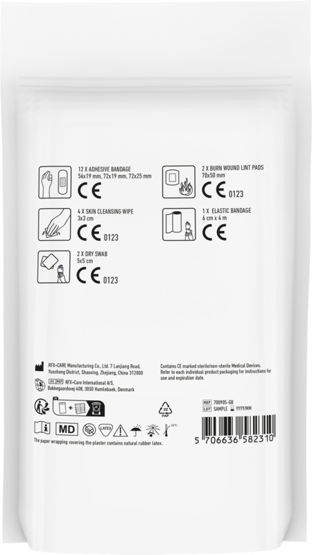 Ce kit premiers secours est très utile à la maison ou dans la voiture pour parer aux urgences. Contient : 12 pansements, 4 cotons pour nettoyer la peau,2 cotons secs, 1 bandage élastique, 2 compresses pour les brulures. Tous les contenus à l’intérieur des kits sont conformes à la législation européenne. Le prix comprend l’étiquette personnalisée. Livré en pochette papier. Papier Kraft recyclé. Fabriqué en Lithuanie.
