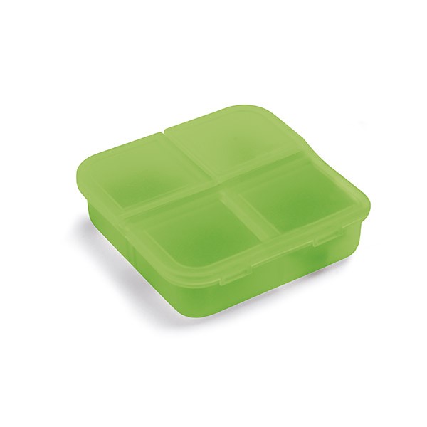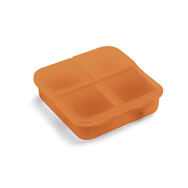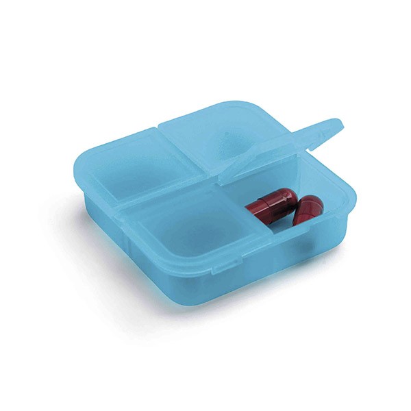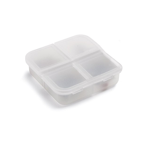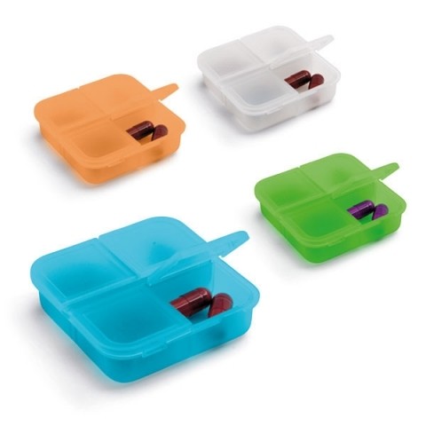 Pilulier avec 4 compartiments avec couvercle. Fabriqué en Chine.