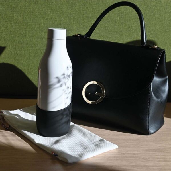 La bouteille est fabriquée en PET biosourcé. Sans BPA, c’est un plastique qui est recyclable à 100 %. La partie colorée est en SEBS recyclé, démarche de zéro déchets et d’économie circulaire. Ecologique à double titre, le SEBS est recyclé mais également recyclable en fin de vie de la bouteille. Passe au lave-vaisselle et elle vous permettra de conserver la température de vos boissons durant 4 h. Livré sous pochon en tissu matière Seaqual, confectionné en France. Un marquage UV numérique sur le bouchon et frais techniques inclus.