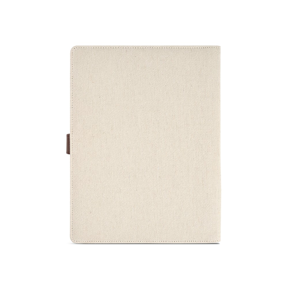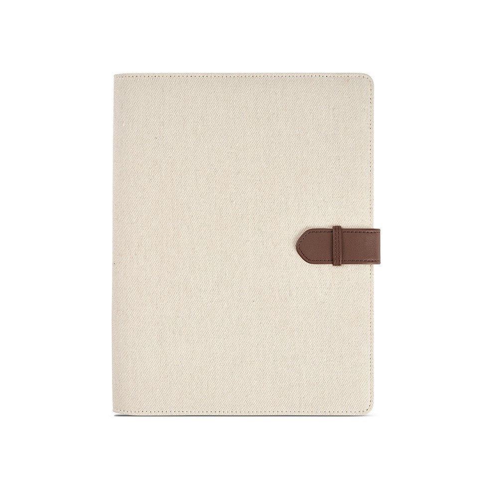 Découvrez l’organisation avec notre élégant conférencier A4 en toile de coton recyclée. Une pochette pour tablette, un carnet composé de 64 pages FSC à points, un porte-stylo et des fentes pour cartes de crédit garantissent la fonctionnalité. Le tout emballé dans une boîte individuelle en kraft recyclé « seconde vie ». Fabriqué en Chine avec 100 de matériaux durables et empreinte carbone : 3.37 kg – eq CO2.