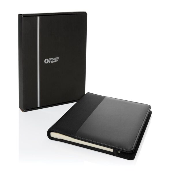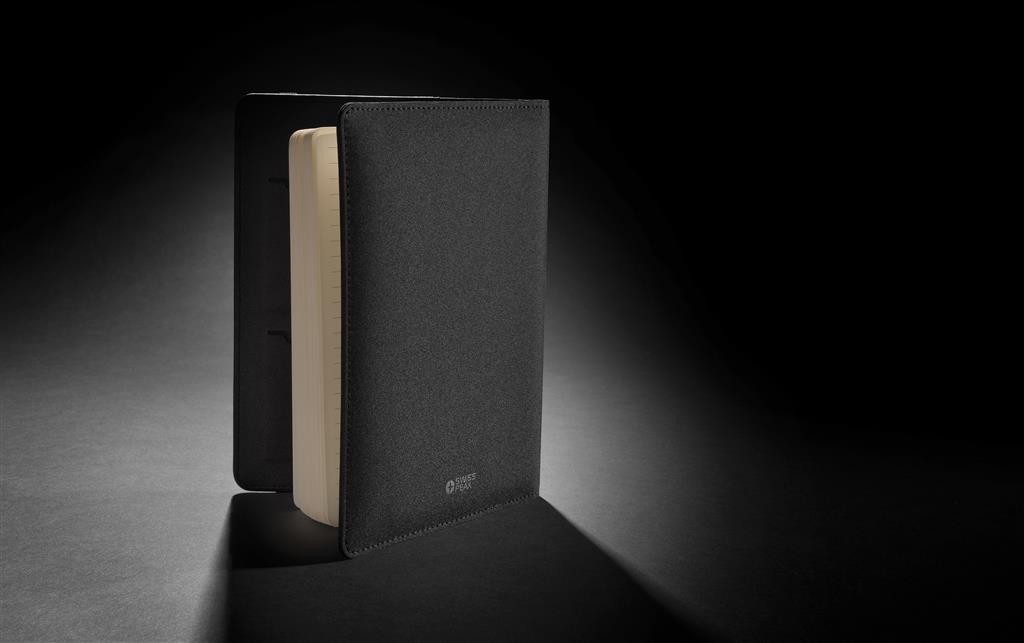 Porte-documents fabriqué en polyester recyclé et en PU recyclé certifié RCS. A l’intérieur, vous trouverez 3 fentes pour cartes, un passant stylo et une pochette pour documents A5. Restez organisé avec le carnet de notes A5 rechargeable, doté d’un papier crème FSC® mix et d’un grammage de 80 g/m². Présenté dans une boîte cadeau FSC®, ce portefeuille allie style et fonctionnalité sans effort. Fabriqué en polyester 100 % recyclé avec le traceur AWARE™.