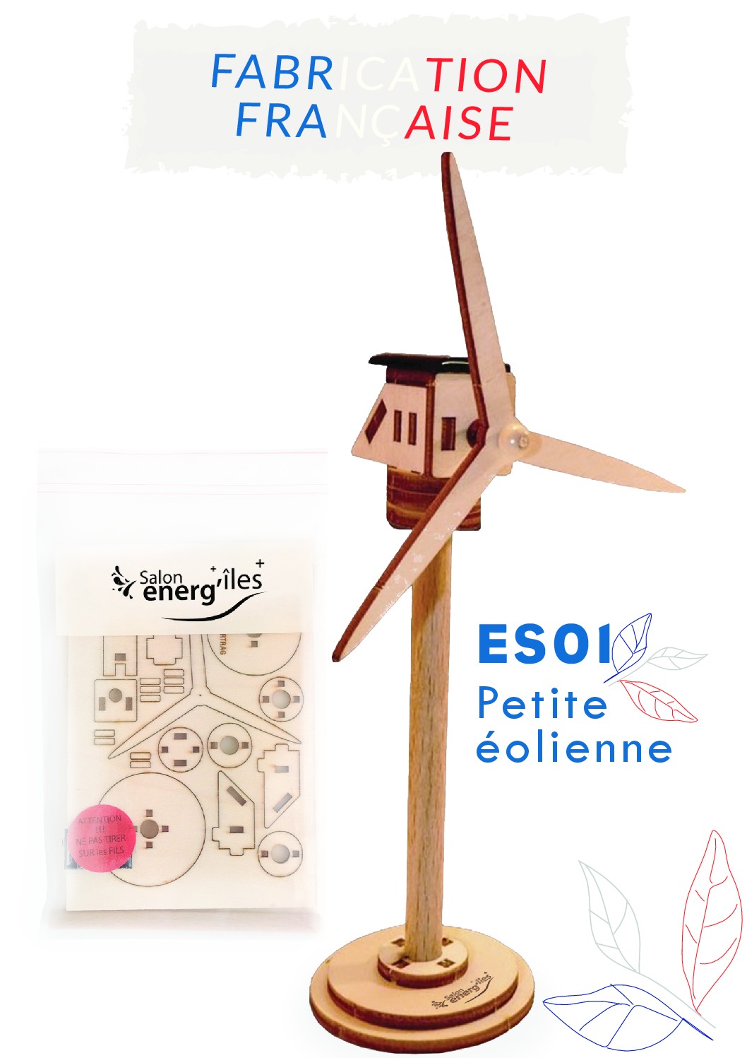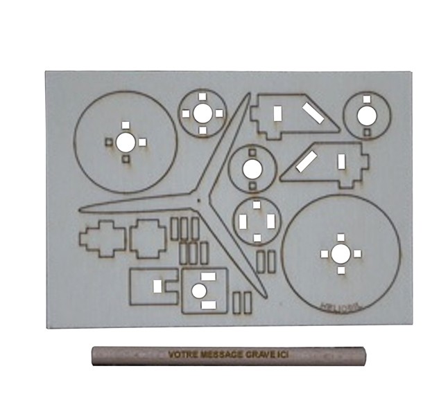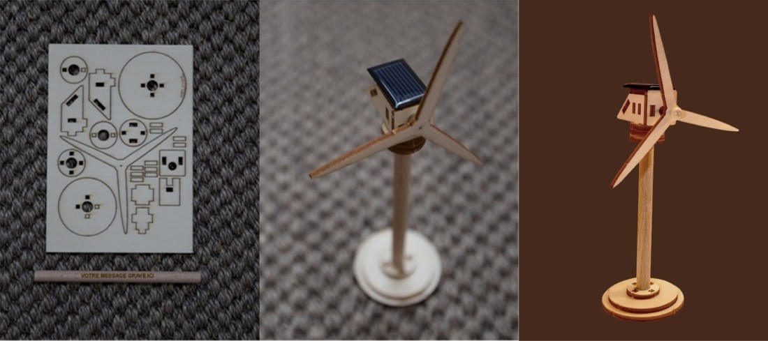 L’éolienne solaire en bois est équipée d’un capteur solaire et d’un moteur électrique pour faire tourner les hélices. Proposée en kit de montage rapide et facile avec notice et sans outil. Un Cadeau original et haut de gamme associé au plaisir d’un jeu de construction Construisez votre propre éolienne solaire en bois ! Un marquage laser et frais techniques inclus.