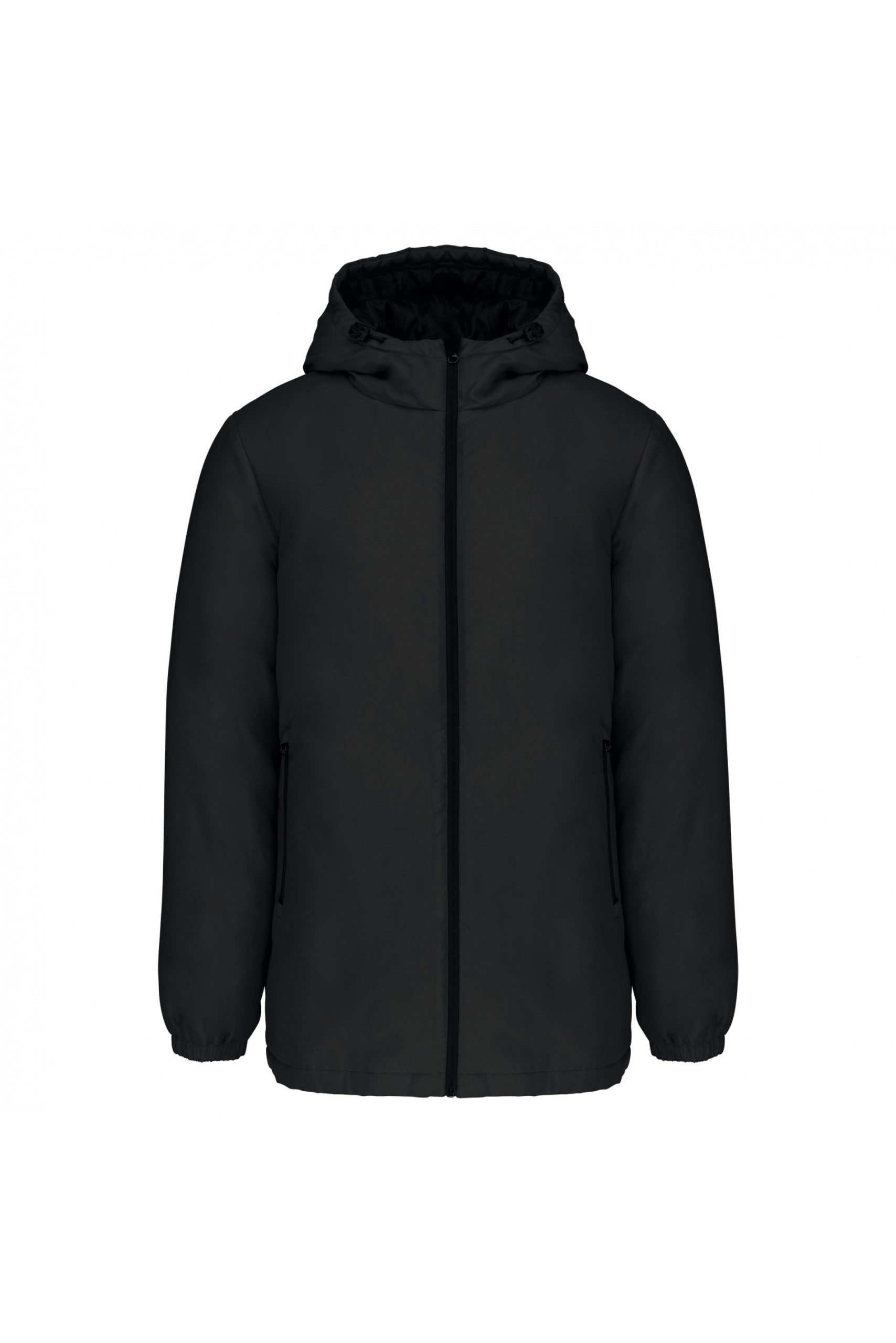 100% polyester recyclé post-consumer. Tissu déperlant. Finition peau de pêche pour un toucher plus doux. Doublure polyester taffeta 210T noire. Intérieur matelassé 100% polyester. Coupe confort. Fermeture zippée nylon et tire-zip métal. Capuche 3 panneaux doublée polyester avec cordon de serrage et stoppeurs. 2 poches devant zippées. 1 poche intérieure avec fermeture par bande auto-agrippante. Bas de manches élastiqué. Dos rallongé pour plus de confort. Patch tissu intérieur col pour la personnalisation. Zip invisible côté cœur et bas de vêtement pour accès personnalisation. Certifié STANDARD 100 by OEKO-TEX®N° CQ1007/7, IFTH.