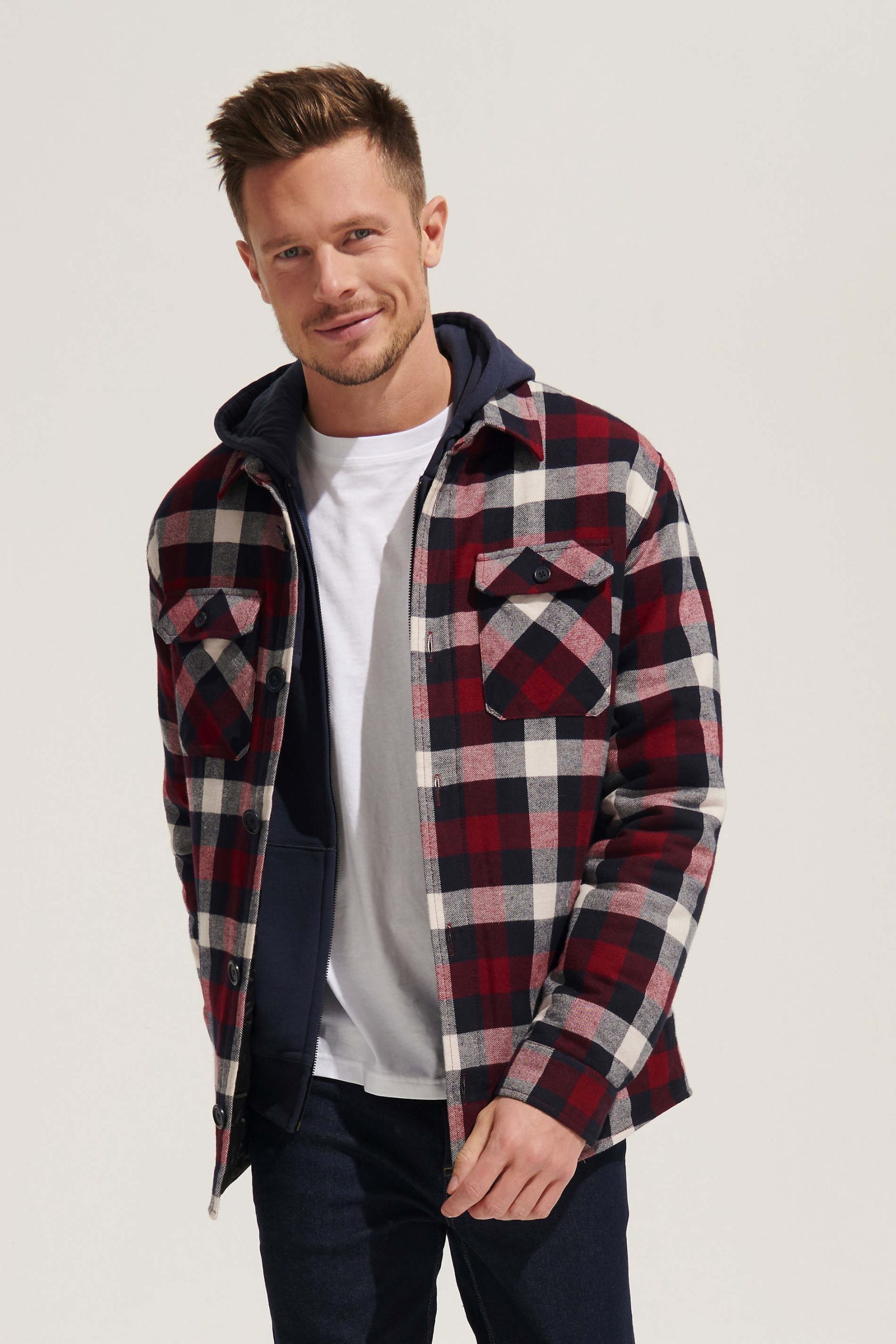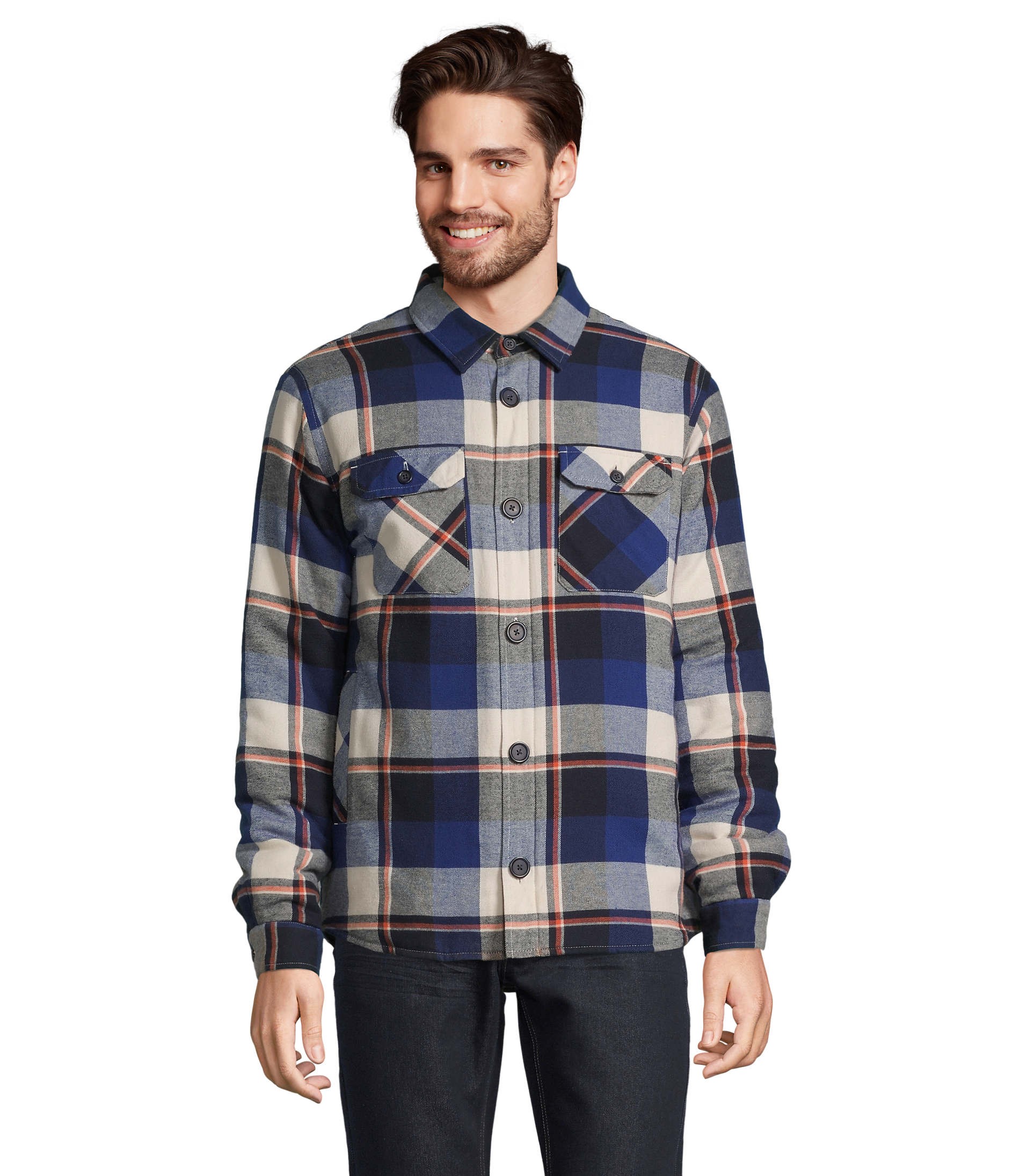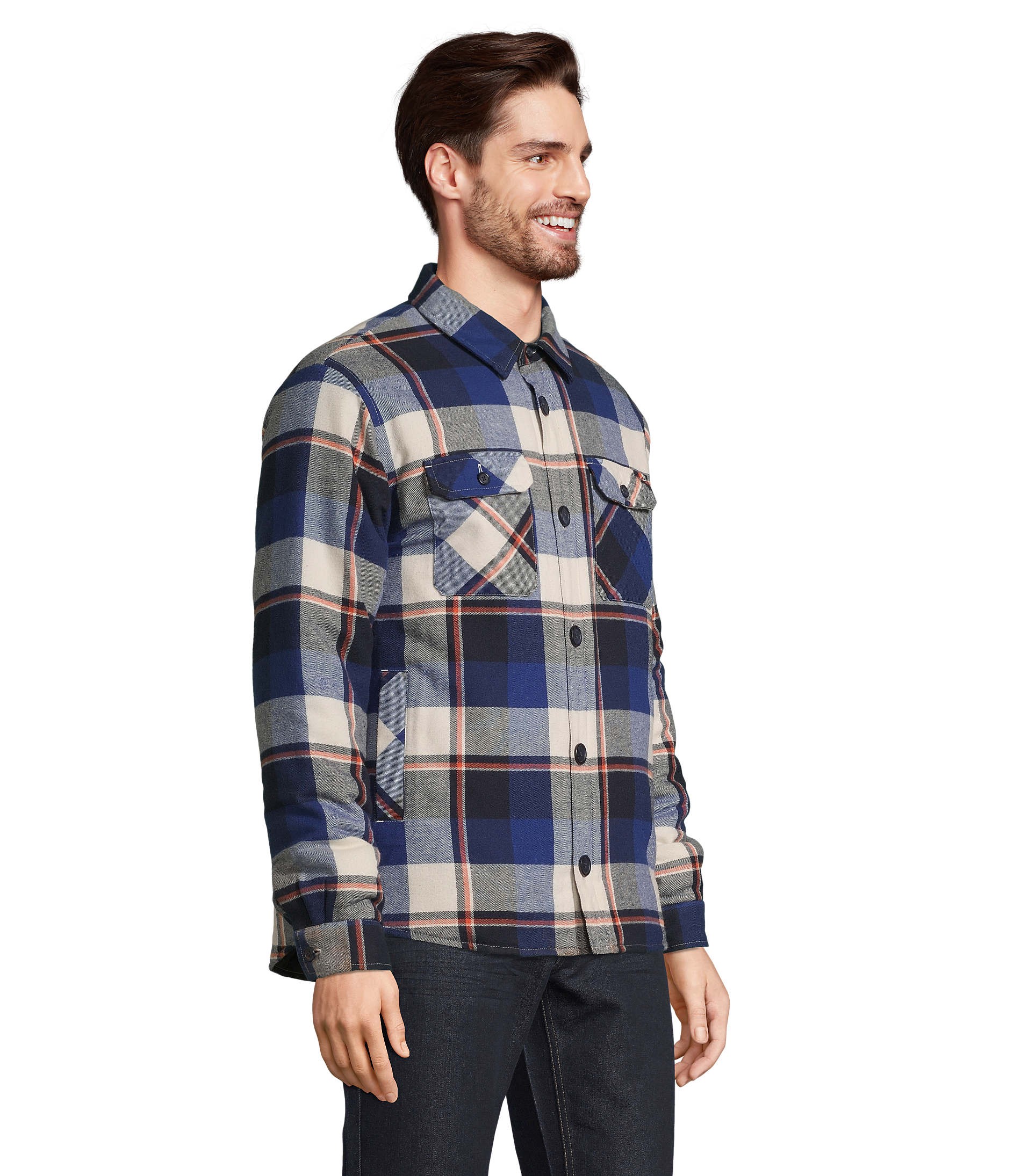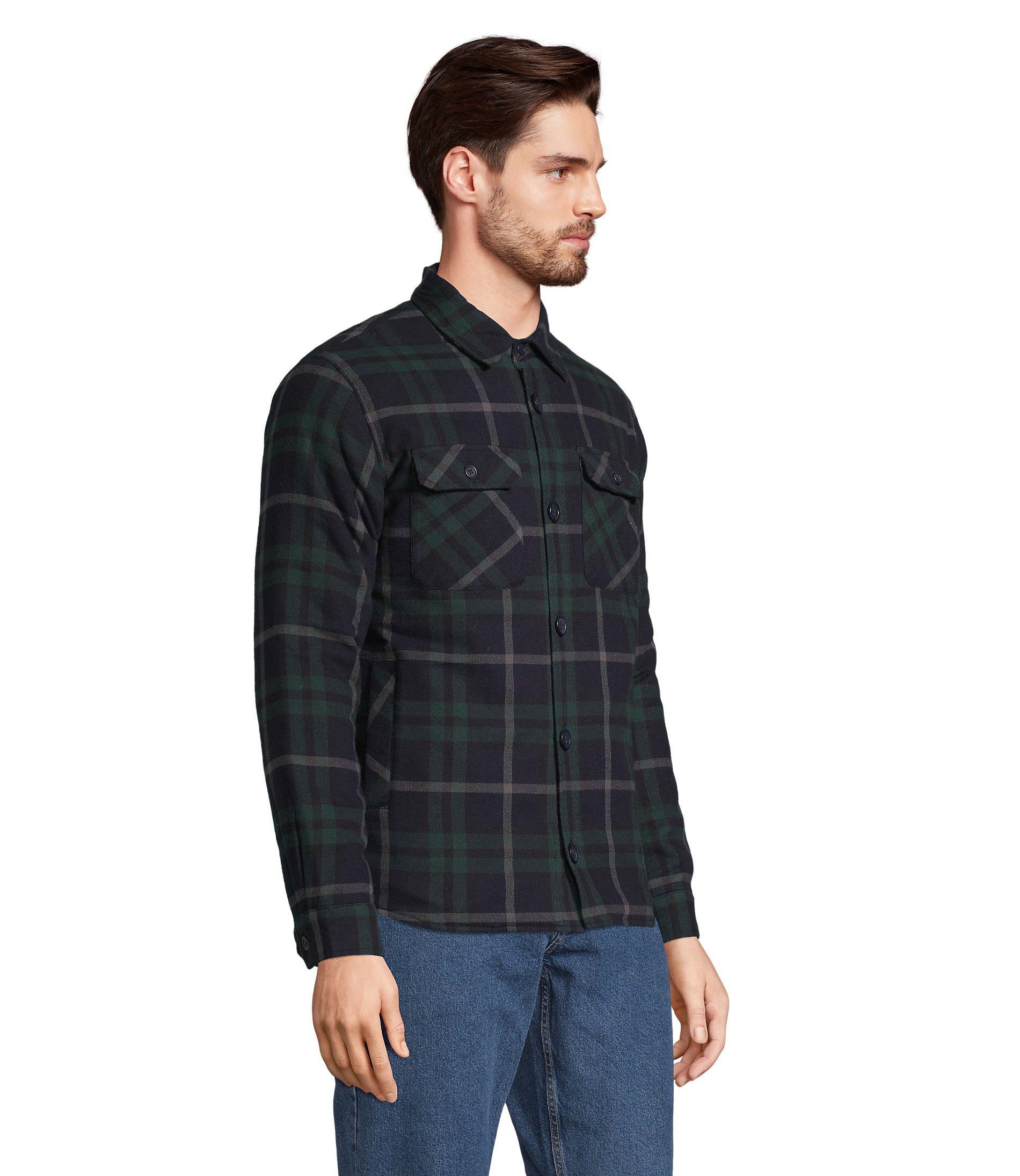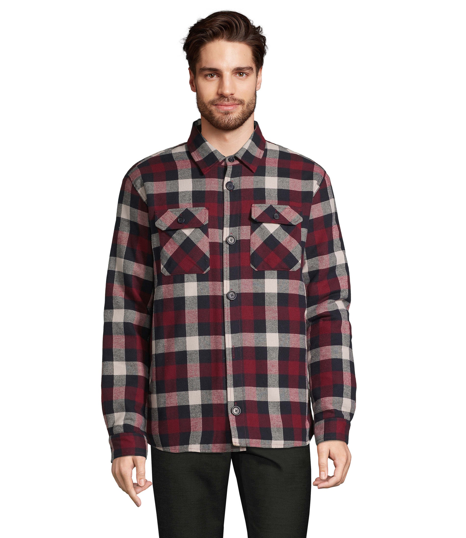 Extérieur : flanelle 100% coton, intérieur : taffetas 100% polyester recyclé 210T / Rembourrage : 100% polyester recyclé (120gr/m² corps – 90gr/m² manches). Existe en 3 motifs carreaux différents, ouverture principale boutonnée et col chemise. Poches latérales, 2 poches poitrine plaquées et boutonnées. Poignets boutonnés avec une fente, poche poitrine intérieure côté coeur avec fermeture auto-agrippante et doublure matelassée. Zip intérieur bas du dos pour la personnalisation et dos rallongé et coupe confortable. Fabriqué au Bangladesh.