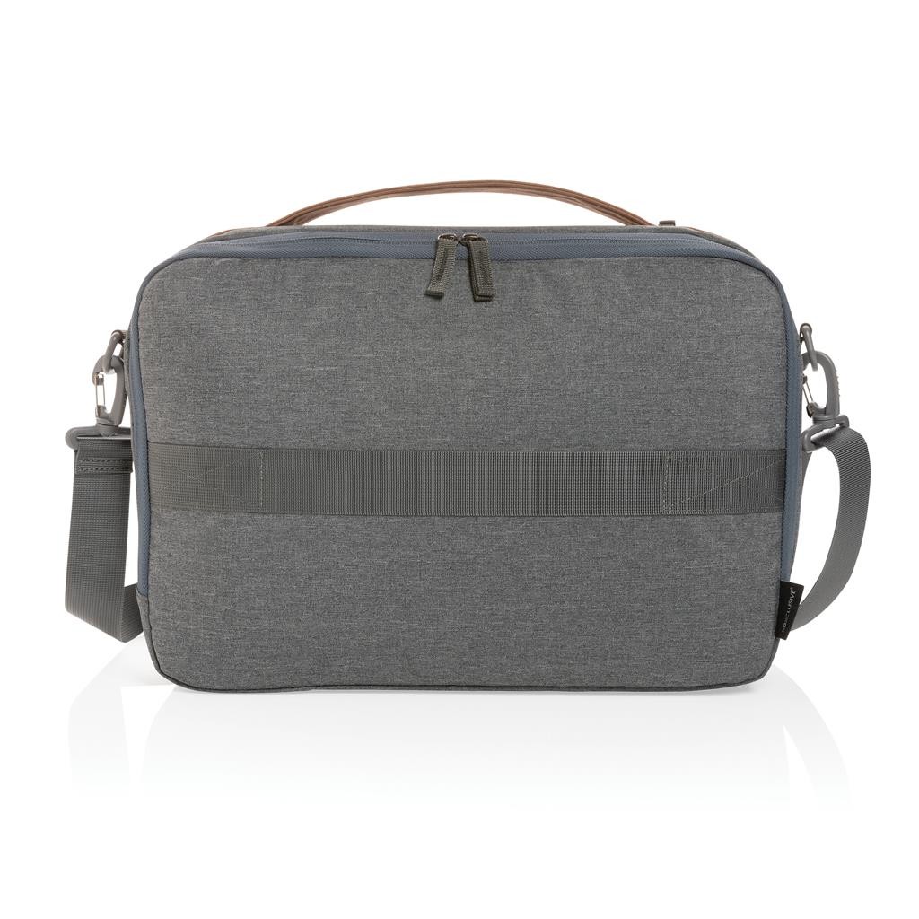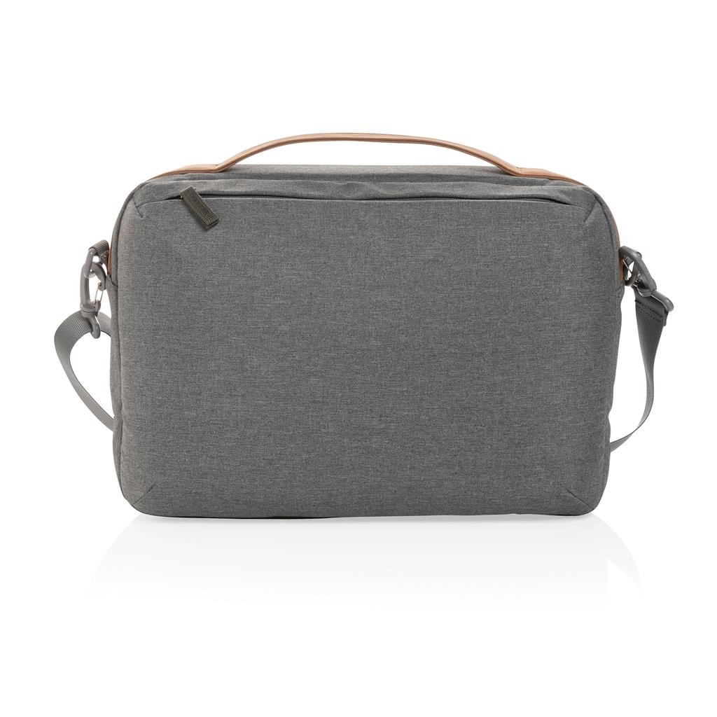 Sacoche d’ordinateur au design minimaliste et élégant. Le compartiment principal dispose d’une poche à ordinateur portable de 15,6” et 2 poches ouvertes en maille. Poche à fermeture à zip à l’avant. Sur le dessous, vous trouverez une poignée PU. Les matériaux extérieurs sont fabriqués en polyester recyclé. Avec traceur AWARE™ qui prouve l’utilisation réelles des matériaux recyclés. Chaque sac permet d’économiser 5,2L d’eau et a réutilisé 8,75 bouteilles en PET 0,5L. 2% de chaque produit IMPACT vendu sera reversé à Water.org.